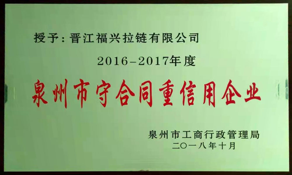 2016-2017 Quanzhou contract abiding and trustworthy enterprise
